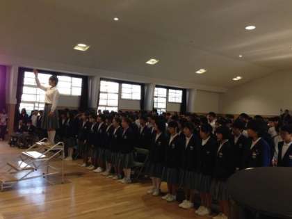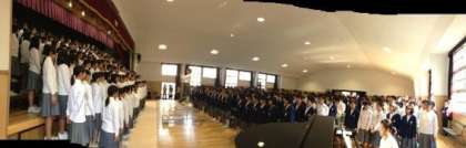 会場席で観覧していた1,2年生も起立して、全学年で大合唱です。