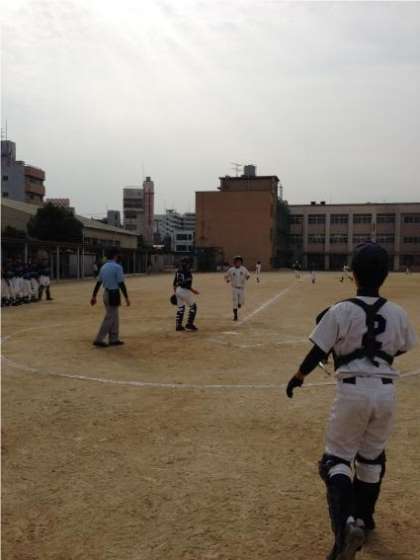 本日本校で、大正東中学校と対戦、7対5で勝利しました。