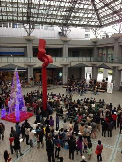 港区ふれあい音楽会 1 公開日 2013/11/03 更新日 2013/11/03 お知らせ オーク200オーク広場で、第32回港区民文化のつどい「ふれあい音楽会」が開催されました。そこに、本校吹奏楽部が出演しました。 茅切先生指揮の下、「小さな恋のうた」「じょいふる」の2曲を演奏しました。 3年生が先日の文化祭で引退しましたので、今回は1,2年生だけで演奏する初めての発表会になりました。 しかし、堂々としたもので、来客者の皆さまから盛大な拍手を頂きました。 いいね(0)