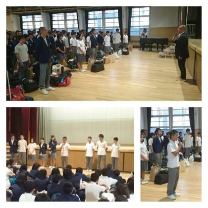 帰校式では、校長先生からねぎらいの言葉と、何を行うにもそれぞれの生徒が「よく頑張れた良い修学旅行であった」とのお話も頂きました。3年生にとっては中学校の一つの大きな行事が終わりました。来週からはまた新しい気持ちに切り替えて、頑張ってほしいと思います。「がんばれた」70期生の皆さんに改めて「お疲れさまでした」という言葉と「拍手」を送りたいと思います。