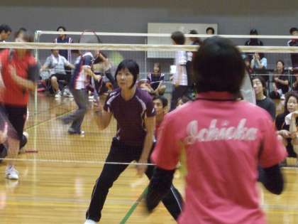 2試合目は、港中学校です。がんばれ市中PTAバドミントン部!!