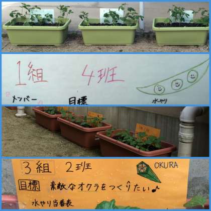 今学期技術科では2年生が「エダマメ」、「なす」、「トマト」、「オクラ」の栽培をしています。