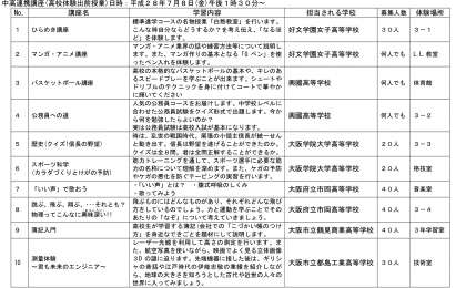 6つの高校から先生方をお招きして、10の講座で講義や実技講習を行って頂きます。