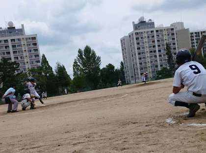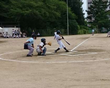 試合は2点を難波中学校に先行されるも、五回に連打で同点に追い付き一気に反撃ムードが高まりましたが、六回裏に3点を追加され、2対5で残念ながら惜敗しました。