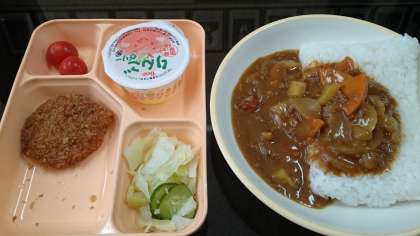 今日から給食も始まりました。2学期最初の給食は、やはり一番人気のカツカレーでした。しかもデザートには、リンゴゼリー!みんな美味しそうに食べていました。