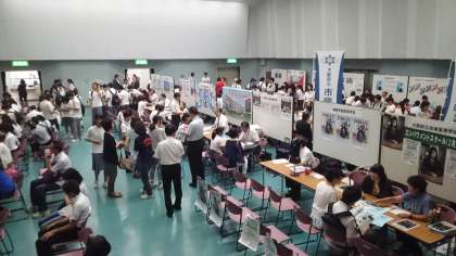 本校からも3年生の生徒や保護者を中心にたくさんの方々が来られ、高校の先生方からの説明を熱心に聞いていました。