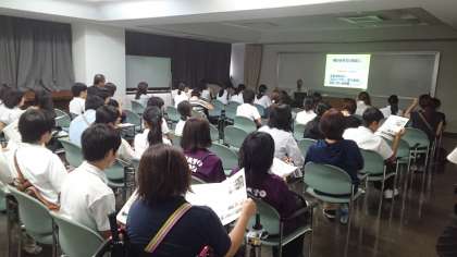 先週の9月3日の土曜日、港区民センターにて港区の5中学校合同の高校説明会を開催いたしました。当日は公立私学合わせて32校にお越しいただき、ブース形式と説明会形式の説明会を実施していただきました。