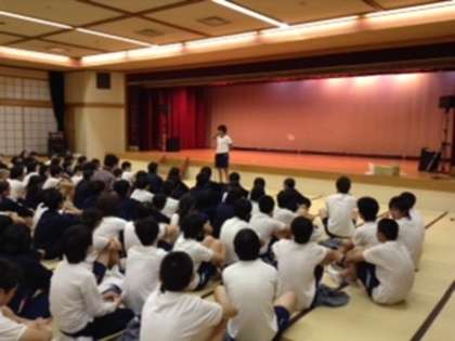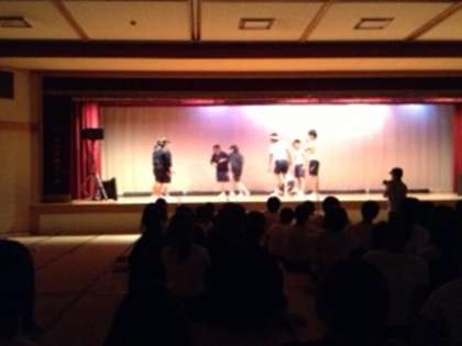 そして夜はいよいよお楽しみのレクリエーション大会。生徒の有志で作った修学旅行委員会を中心に、短い期間で企画や準備を頑張ってくれました。司会者の漫談?ではゲストとして生徒や先生がたくさん登場し、おおいに盛り上げてくれました。