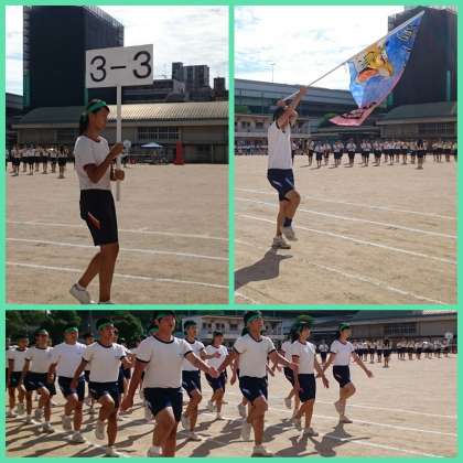 写真は、3年生1組〜3組の行進の様子です。3年生は、流石の行進を披露してくれました。