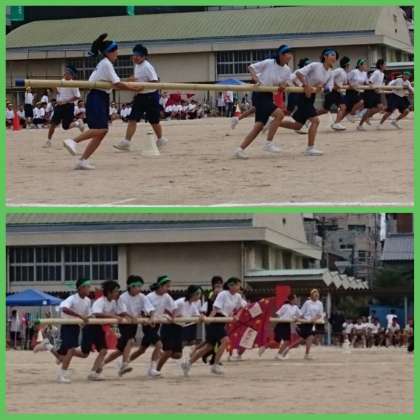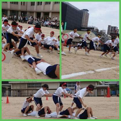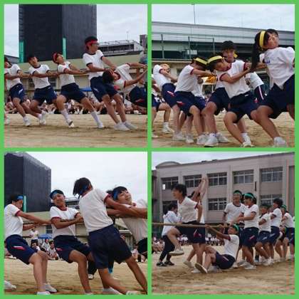 学年種目の様子です。1年生は【台風の目】、2年生は【蛇的脱皮(シャーダートゥイピン)】、3年生は【綱引き】を実施しました。それぞれ、学年種目の優勝クラスは1年3組、2年1組(女子)・2年3組(男子)、3年3組でした。