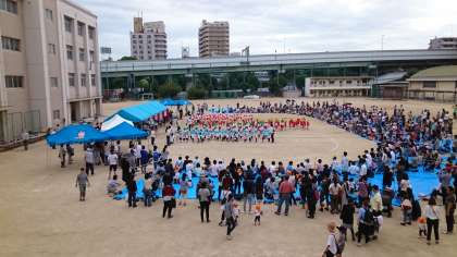 今日は、隣の日輪学園幼稚園が本校のグランドで運動会を実施しております。