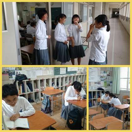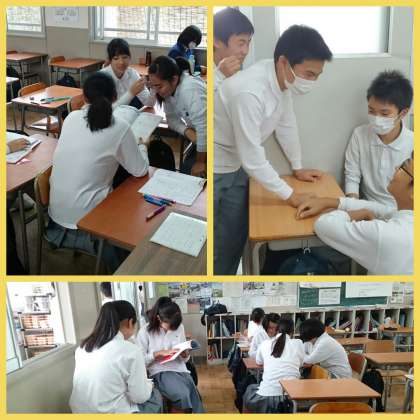 写真は今日のお昼休みの3年生のクラスの様子ですが、勉強している生徒か談笑している生徒まで思い思いの時間を過ごしているようでした。残す教科が午後は数学だけという事もあったとは思いますが、少し緊張感が少なかったような気もしましたが……。ともあれ、テストの結果を真摯に受けとめ、さらに勉強に励んでほしいと思います。