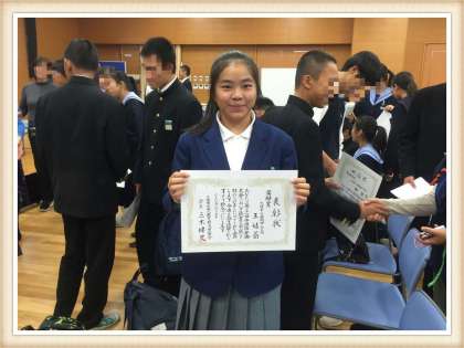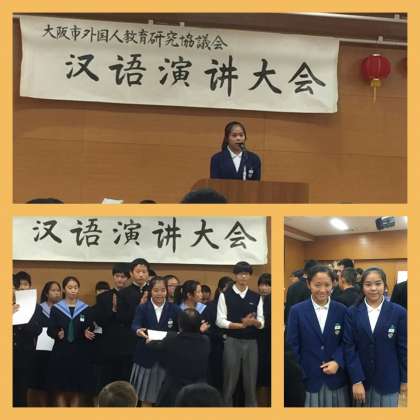 先週末の11月5日(土)、大阪ビジネスフロンティア高等学校の会場で、中国語弁論大会が開催されました。本校からは2年生の王さんが発表し、奨励賞を頂きました。発表前とても緊張していた王さんですが、友達からの応援もあり、本番ではしっかりとした口調で堂々と発表してくれました。今回の経験を自信に変えて、これからも頑張って下さい。