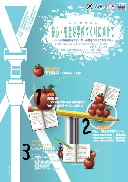 シンポジウム「安心・安全な学校づくりに向けて」が、大阪市教育委員会主催で下記の通り行われます。