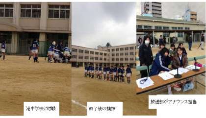 市岡中学校は港南中学校と対戦し、3トライ1ゴールをあげ、守っては1トライにおさえ、17対0で新チームになって初めての勝利をおさめました。保護者の皆さまもたくさんの声援をいただきありがとうございました。