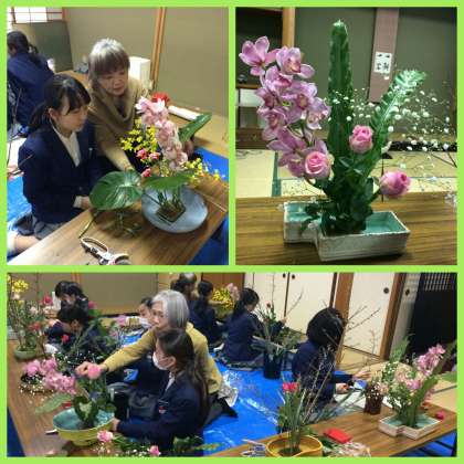 華道部の活動 1/17 公開日 2017/01/17 更新日 2017/01/18 お知らせ 本日の華道部の活動では梅の花を花材として取り扱いました。もうすぐ2月、小さな蕾〔つぼみ〕が春の訪れを心待ちにしているように見えました。 4月に華道を始めた1年生も花材の表と裏を見極めたり、中心となる3本の角度決めなど、講師の先生から教わってきたことを自分で表現出来るようになってきました。 月に1〜2回の活動ですが、この日だけは和室がお花の良い匂いに一杯包まれ、華やかな時間を過ごしています。 いいね(0)