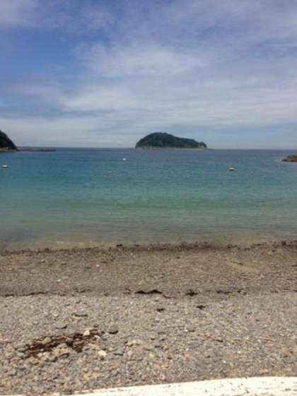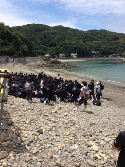 (写真)波もおだやか/浜辺での集合