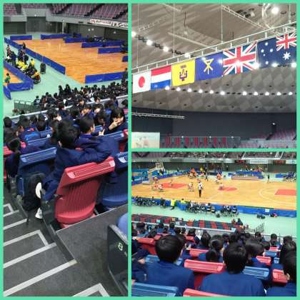 体験後はメインアリーナで、車椅子バスケットボール国際試合を観戦しました。日本vsオランダの一戦は終始接戦