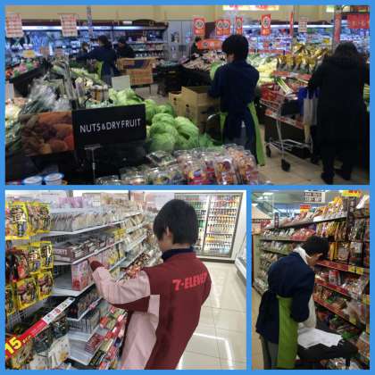 繁栄商店街での街頭販売やポップ作り、郵便局でのカウンター業務、ライフでの品だし、セブンイレブンでの品並べなどの作業を黙々と行っていました。この2日目様々な事を学んだのではないでしょうか?