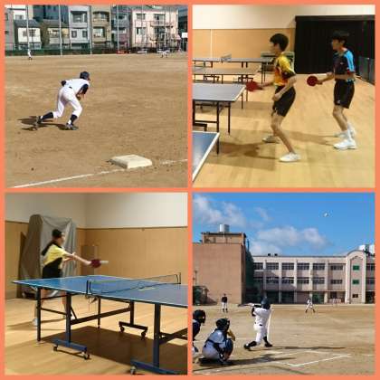 今日も寒波の影響で朝から非常に寒い一日でしたが、午前中から野球部と卓球部の部員たちは練習試合を行っていました。
