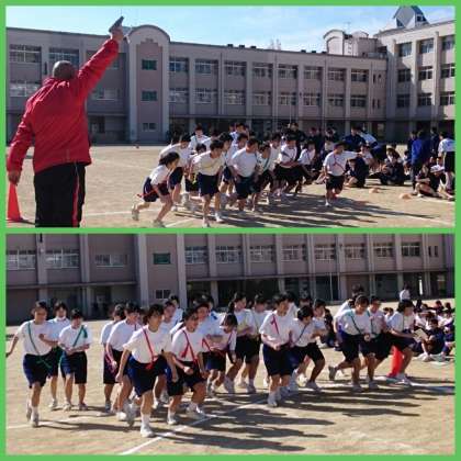 今日は、ようやく駅伝大会を実施することが出来ました。青空の下で行われた今日の駅伝大会は、男子女子共に生徒達の大声援の中で行われ、どの生徒も自分の受け持った区間・距離を精一杯走りきり、タスキを繋ぎました。タスキを渡した後は、責任を果たした安堵感と疲労から、その場に倒れ込む生徒も沢山いました。大いに盛り上がりを見せた今大会、自分のクラス、学年に関係なく頑張って走る先輩や仲間に声援を送り、拍手する生徒達の姿がとても印象的で、素晴らしいものでした。ちなみに、クラス優勝は12年生共に、3組が勝ち取りました。生徒の皆さんお疲れ様でした。また、寒い中声援を送り続けて頂きました、保護者の皆さまもありがとうございました。