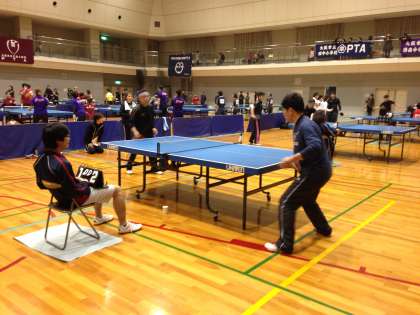 現在、知花キャプテンを中心に、熱戦を繰り広げています。今年度も卓球部員が少なく、本校PTA役員・実行委員も選手として出場しています。また、学校からは中井健太郎先生も出場しています。