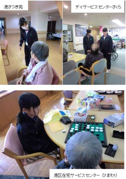 港区在宅サービスセンター ひまわり:利用者さんと一緒にオセロをしたり、食事の介助のお手伝いをしました。