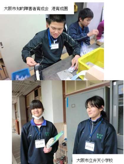 大阪市知的障害者育成会 港育成園:事業所の方々と一緒に作業をしました。ひとつひとつ袋詰めをして重さも量ります。