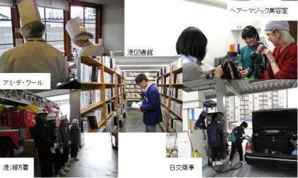 港図書館:カウンターに立って、本の貸し出しや返却を行い、本の整理を行いました。図書館の方がとても丁寧に教えてくださいました。