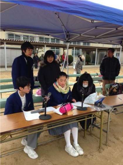 また、本日の放送は市岡中学校放送部が担当してくれました。来場の皆さまから、「大変良かった」と好評でした。放送部の皆さん、ありがとうございました。(写真右)