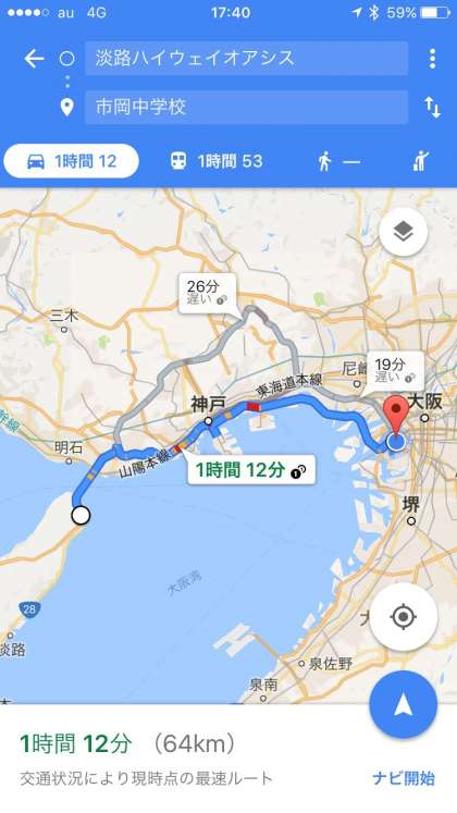 現在、淡路島ハイウェイオアシスを予定より35分早く出発しました。