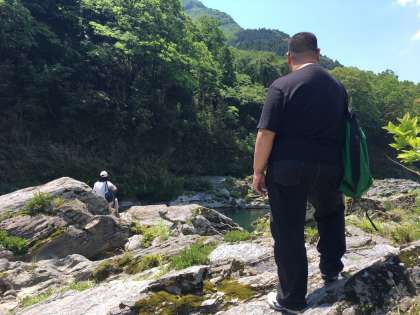 最後の写真は、某N先生の後ろ姿と、美しい自然の風景をお届けして、今年度の修学旅行の報告を終了としたいと思います。
