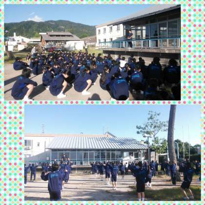 全員で集合して朝の集いを行いました。 全員、元気に過ごしているようです。