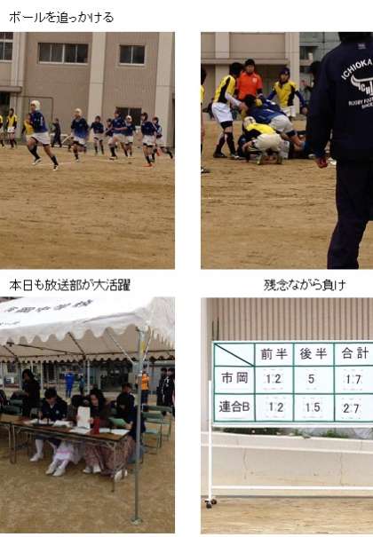 大阪市D地区ラグビー新人戦順位決定戦で市岡中学校は、加賀屋・住之江連合チームと9位をかけて戦いましたが先制するも、後半に逆転され、17対27で負けました。