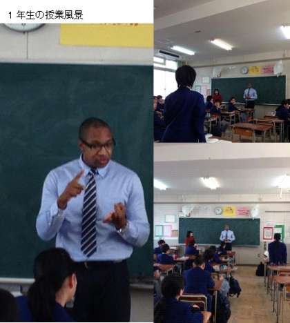 学校は火曜日じょん先生の授業のある日です。1年生3回目になります。普段と違う授業で生徒も楽しみにしているみたいです。じょん先生も日本語(大阪弁?)がとても上手で生徒も安心しているみたいです。(写真:上)
