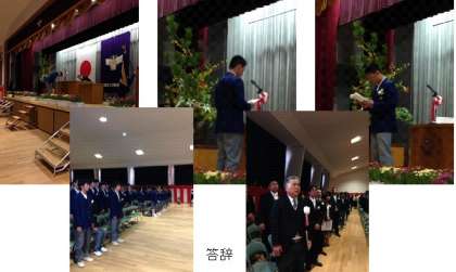 答辞。卒業生代表、平井大雅君。突然振り返り、先生方、卒業生そして保護者の皆様方へ、マイクなしでの話は、会場の涙をさそいました。