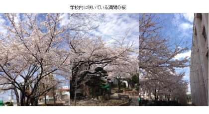 敷地内に咲いている桜の花は、新入生を迎えるため、満開になっています。