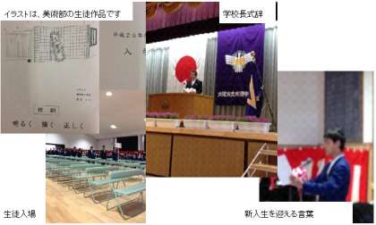 平成26年度入学式を、10時より行いました。今年の入学生は151人、4学級です。学校選択制も始まり、校区以外からも5人が入学しています。とても、緊張した中での入学式でした。151人の新入生の皆さん、充実した中学校生活を送りましょう。