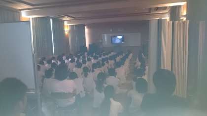 まず、多目的室にて平和学習を(D.V.D.視聴)した後、