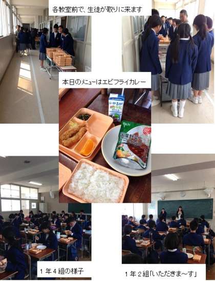 (写真:下)本日の給食メニューは「エビフライカレー」です。まだまだ、準備に時間がかかります。