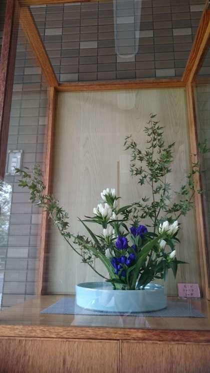 いつもきれいなお花ありがとうございます。 今週のお花は、 モミジ・リンドウ・シャガ です。