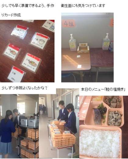 1年生の給食も3日目になり、生徒たちも少しは要領がわかりだしたかな?