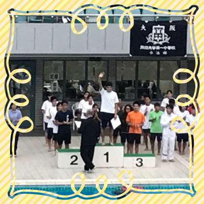 本日、大阪プールにて大阪中学校学年別水泳競技大会が行われ、本校の水泳部も参加しました。