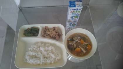 豚肉の甘辛焼き・みそ汁・オクラのおかかいため