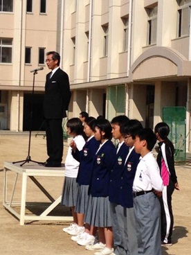 校長先生からは、1学期が始まりちょうど一月がたち、いいリラックスになったのではと、そじて、本格的に1学期の行事が始まるので頑張ってほしい。また、挨拶や整列や中学校で習ったことは、卒業後も続けていってほしいとのお話でした。