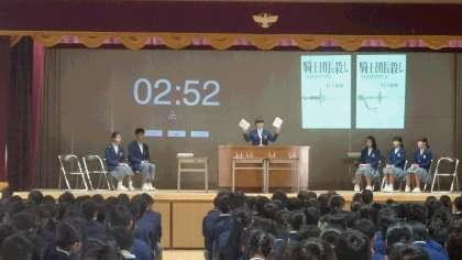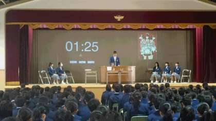 学校長の挨拶の後、各学年から選抜された6名の生徒が、