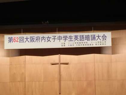 先の11月18日土曜日に、プール学院中学校・高等学校に於いて、第62回大阪府内女子中学生英語暗唱大会が開催されました。本校からは2年生1名が参加いたしました。