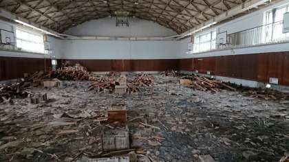 体育館の床は、年末までにすべて剥がされて