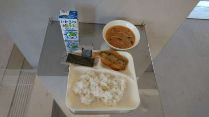 今日のメニューは、いわしのフライ・ みそ汁・焼きのり・ライス・牛乳でした。 ごちそうさまでした。