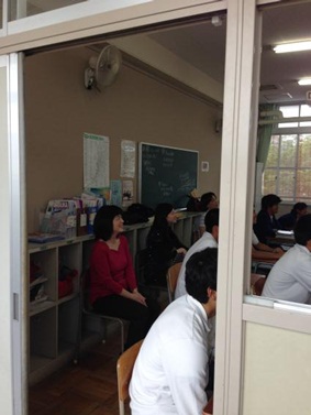 小中連携の一環として、弁天小学校と磯路小学校から先生が来られ、本校の英語授業を見学されました。3年生1組の授業で生徒たちも、普段以上?に熱心に授業に取り組んでいました。